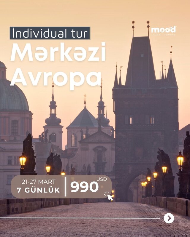 1275 Azn Xüsusi təşkil edilmiş Avropa qrup turu ilə 3 ölkə və 4 şəhəri kəşf etmək imkanı qazanın. Tur çərçivəsində İtaliyanın Roma və Vatikan, Avstriyanın Vyana və Macarıstanın Budapeşt şəhərlərini gəzərək, tarixi və mədəniyyət
