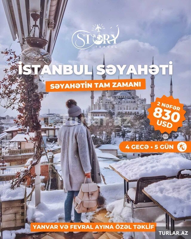 Şirkət599 Azn İstanbul Sizi Çağırır - Qrup Turu ilə Möhtəşəm Səyahət Novruz bayramına özəl 20.03.2026 - 24.03.2026 - 599$ ⸻ Qiymətə daxildir Hoteldə gecələmə Səhər yeməyi Peşəkar tur rəhbəri Transfer Gediş-dönüş aviabileti 8-10 kq əl