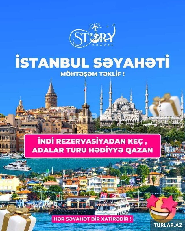 Şirkət1099 Azn Fevral - Mart 2026 üçün super fürsət! Özəl günlərini İstanbulda qeyd et! Sevgililər Günü və 8 Mart Qadınlar Günü İstanbul səyahəti Gediş - dönüş aviabileti Oteldə gecələmə Səhər qidalanması Vip transfer və