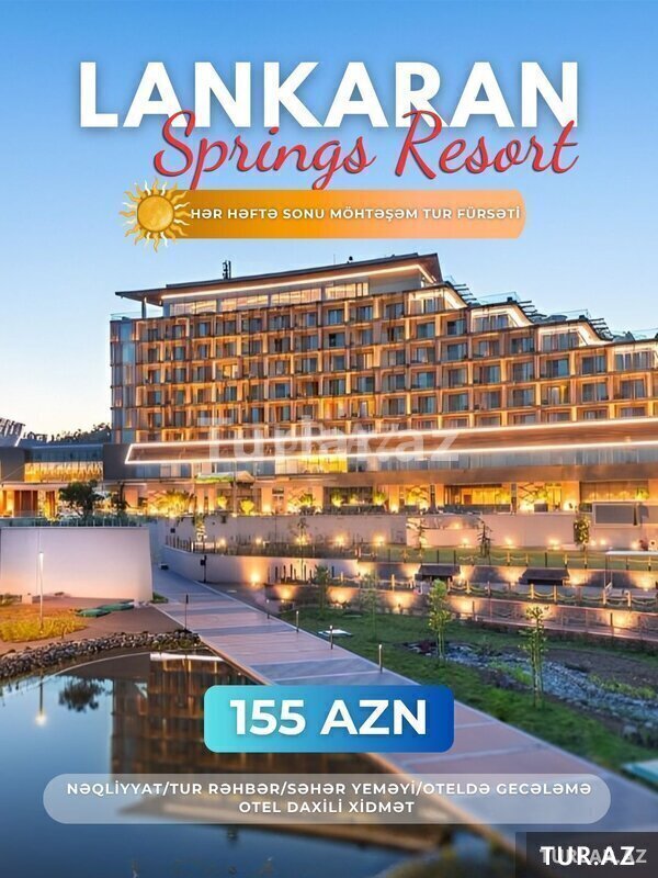 85 Azn ~ Lənkəran Lerik turu •Tarix: 5, 6, 12, 13, 19, 20, 26, 27 Aprel •Qiymət: •Ekonom Paket: 25 azn •Standart Paket: 29 azn ✓Qiymətə daxildir: •Nəqliyyat xidməti •Ekskursiyalar •Səhər yeməyi (standart paketdə) •Çay