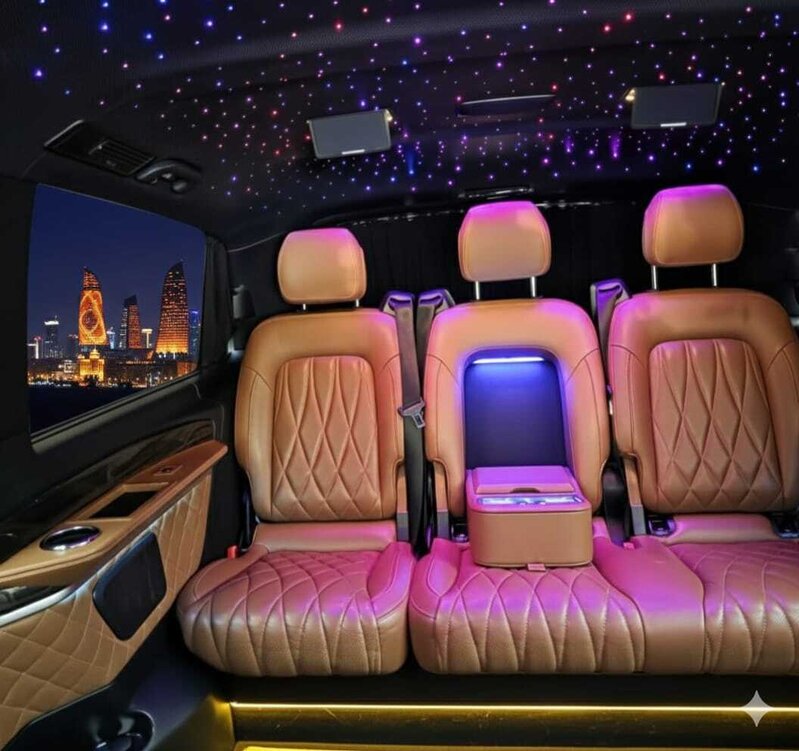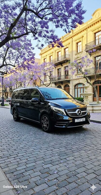 7 nəfərlik VIP Mercedes-Benz V-Class - premium komfort, geniş salon və səliqəli interyer ilə yüksək səviyyəli qonaq və rəhbər heyət daşınması üçün ideal seçimdir.