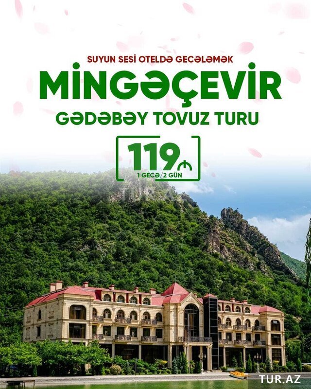89 Azn Bakının səs-küyündən uzaqlaşıb təbiət qoynunda dincəlmək istəyənlər üçün unikal bir fürsət! Sizə xüsusi olaraq hazırlanmış Mingəçevir - Gədəbəy - Tovuz turuna qoşulmağa dəvət edirik. Tur çərçivəsində Suyun Səsi