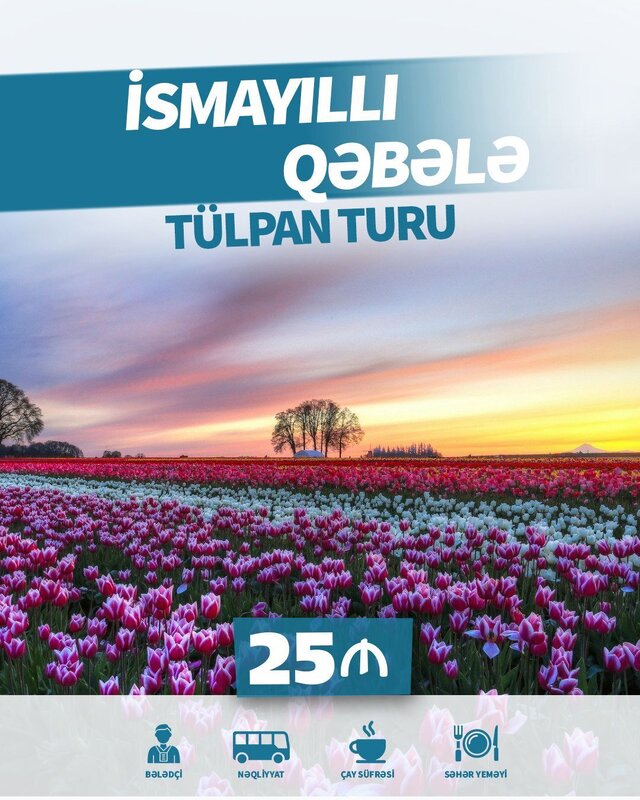 Rəngarəng tülpan tarlaları, təmiz hava və möhtəşəm təbiət mənzərələri sizi gözləyir.Hər həftə sonu