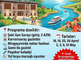 99 Azn 1 günlük bu unikal tur, tarixi və təbiət gözəlliklərini kəşf etmək istəyənlər üçün ideal seçimdir. Gözəl Şəki bölgəsinə təşkil edilən səyahət zamanı həm tarixi yerləri, həm də möhtəşəm təbiəti bir arada görəcəksiniz
