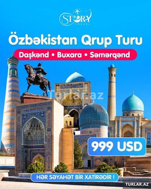 Şirkət555 Azn ÖZBƏKİSTAN QRUP TURU Daşkənd, Buxara, Səmərqənd - Qızıl Marşrut 22.03.2026 - 28.03.2026 - 1099$ 6 gecə 7 gün 25.05.2026 - 30.05.2026 - 999$ 07.09.2026 - 12.09.2026 - 999$ 5 gecə 6 gün _ Qiymətə daxildir Üç fərqli