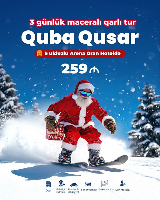 Şirkət129 Azn LÜKS ŞAHDAĞ YENİ İL TURU 2 günlük "MACARA LAKE PARK" otelində – 2025-ci ilin gəlişini fərqli hiss etməyə tələs! Tarixlər 2–3 Yanvar | 3–4 Yanvar Qiymət 189₼-dan başlayır Otaq seçimləri Townhouse (sadə) –