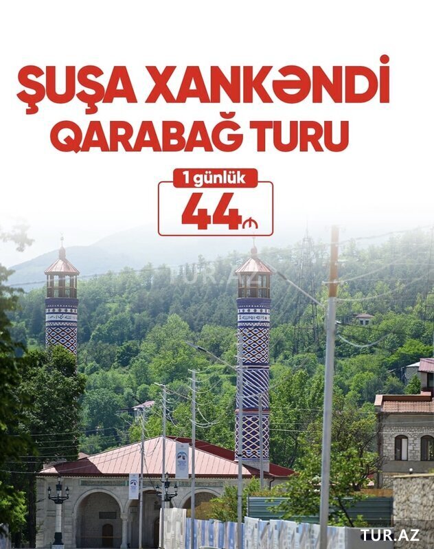 50 Azn XANKƏNDİ-ŞUŞA-LAÇIN AĞDAM-ƏSGƏRAN-XOCALI-ZƏNGİLAN-CƏBRAYIL TURU Tarix: * 17-18, 24-25, 28-29 May, 31-1, 7-8, 14-15 , 21-22, 28-29 iyun — ➥ XANKƏNDİ PALACE HOTEL 5* 199 azn. ➥ ŞUŞA HOTEL 5* 189 azn. ➥ QARABAĞ HOTEL