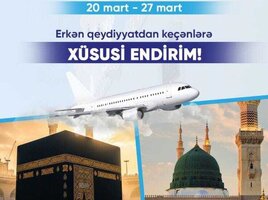 1850 Azn Ümrə ziyarətini rahat və yüksək standartlarla yerinə yetirmək istəyənlər üçün Bakı - Riyad - Bakı marşrutu üzrə endirimli komfort paketi. Bu paket, 6 gecə 7 günlük ziyarət müddətini əhatə edir və ziyarətçilər üçün