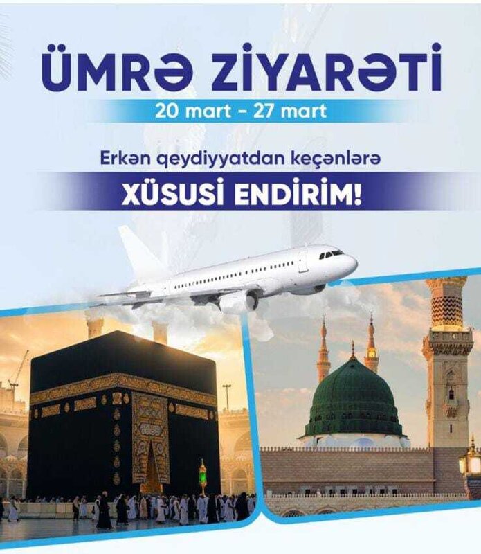 7000 Azn Ümrə ziyarəti üçün bizimlə əlaqə saxlayın. Səfər zamanı heç bir problemlə üzləşmək istəmirsinizsə, bu işi peşəkarlara həvalə edin.