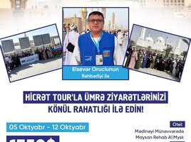 Müddət: 7 gecə / 8 gün Paketə Daxil Olan Xidmətlər: - Aviabilet: Gediş-dönüş bileti - Viza: Ümrə vizası təmin edilir - Nəqliyyat: Hava limanı – otel – hava limanı transferləri və ziyarət yerlərinə rahat nəqliyyat -