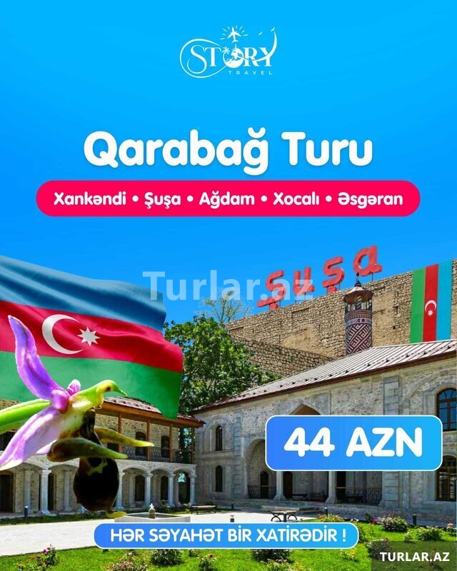 Şirkət44 Azn Xankəndi - Şuşa - Ağdam - Xocalı - Əsgəran turu Tarix : 23, 24, 26, 27, 30, 31 iyul 2, 3, 6, 9, 10, 13, 16, 17, 20, 23, 24, 27, 30, 31 Avqust Qiymət: Ekonom paket: 55 azn. Standart paket: 60 azn. Qiymətə